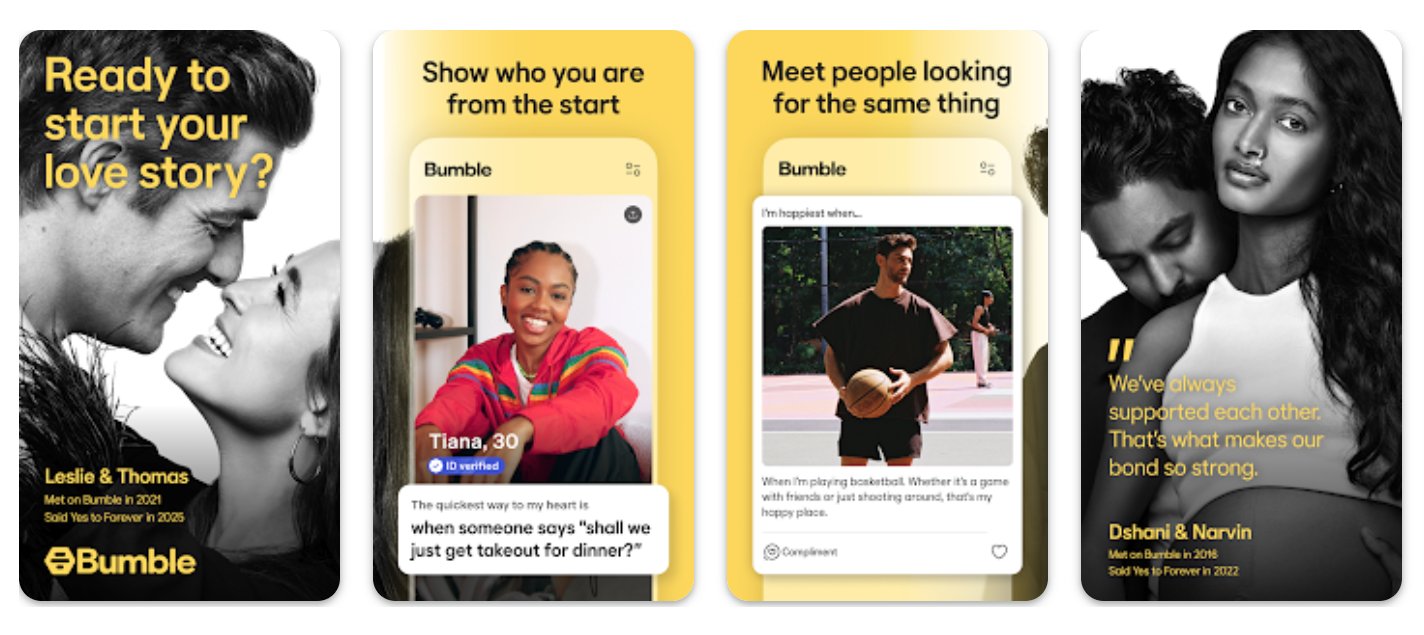 Σε αντίθεση με τις υπόλοιπες dating εφαρμογές της λίστας, το Bumble είναι η μοναδική πλατφόρμα η οποία έρχεται για να αλλάξει όλο τον τρόπο με τον οποίο “λειτουργεί” το online dating. Για την ακρίβεια, στο Bumble η γυναίκα κάνει την πρώτη κίνηση, και όχι ο άνδρας. “Οι σχέσεις πρέπει να ξεκινάνε με σεβασμό και ισότητα”, αναφέρει η dating πλατφόρμα.