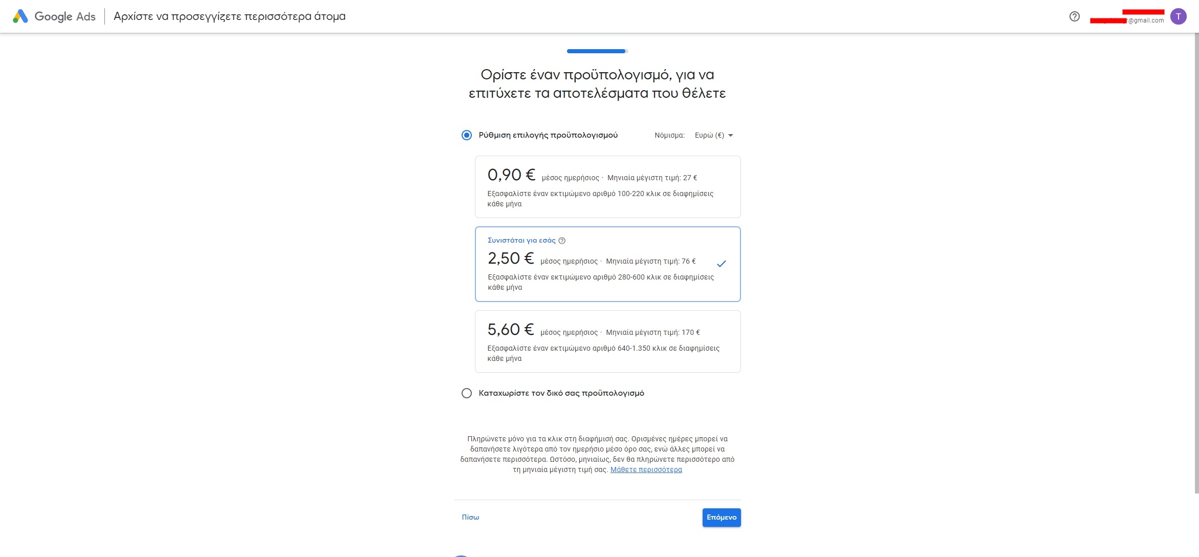 Ωστόσο, μιας και ο ανταγωνισμός είναι πλέον τεράστιος, ένας ευκολότερος τρόπος θα ήταν αν δημιουργούσες διαφημιστικές καμπάνιες στο Google Ads, μια υπηρεσία η οποία θα εμφανίζει τις διαφημίσεις σου στις πρώτες θέσεις των αποτελεσμάτων της Google για συγκεκριμένες λέξεις-κλειδιά που έχεις θέσει. Ανάλογα με το προϋπολογισμό που έχεις ορίσει θα λάβεις και τα ανάλογα κλικ, μιας και το δίκτυο σε χρεώνει μόνο όταν πραγματοποιείται ένα κλικ και όχι με τις εμφανίσεις.