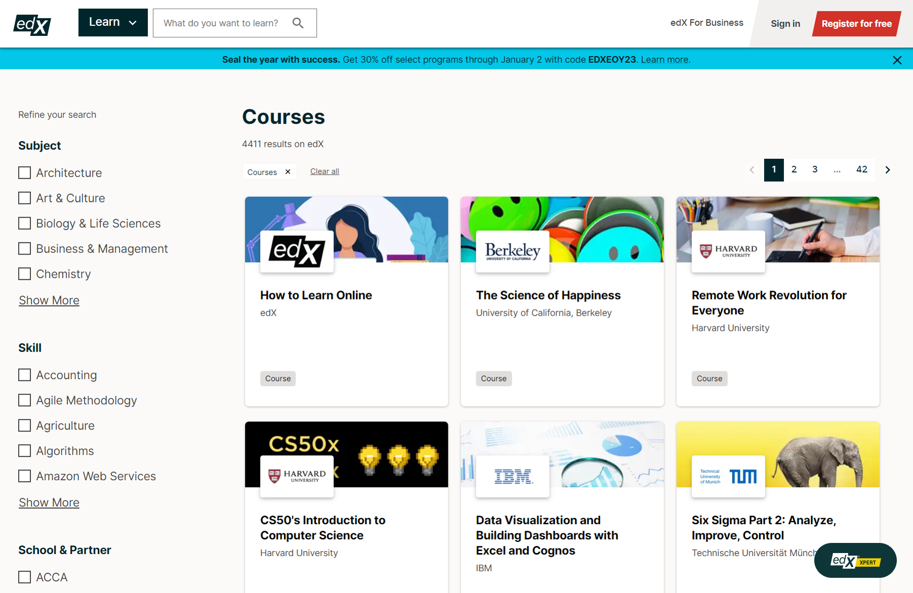 Μέσα στο edX θα βρεις τόσο δωρεάν όσο και επί πληρωμή διαδικτυακά μαθήματα, ενώ η εταιρεία έχει δεσμευτεί να μεταμορφώσει την παραδοσιακή εκπαίδευση αφαιρώντας όλα τα εμπόδια του κόστους, της τοποθεσίας και της πρόσβασης.