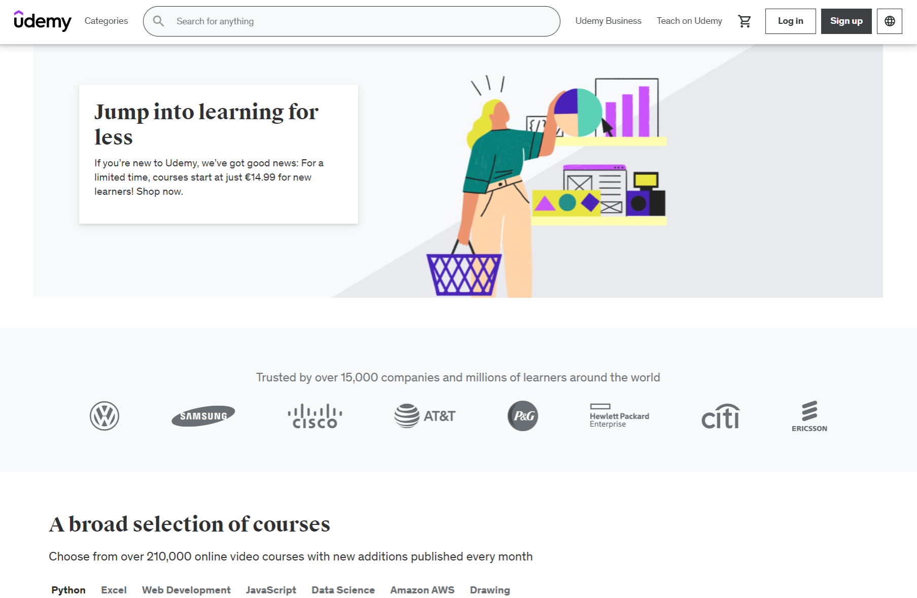 Ίσως η πιο δημοφιλής διαδικτυακή πλατφόρμα εκμάθησης, το Udemy έχει περισσότερα από 130.000 διαδικτυακά μαθήματα στη βάση δεδομένων του και περισσότερους από 35 εκατομμύρια μαθητές.
