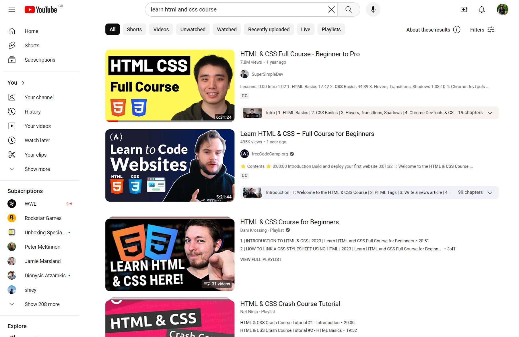 Τα περισσότερα διαδικτυακά μαθήματα για οτιδήποτε ψάχνεις θα τα βρεις συχνά με τις λέξεις-κλειδιά “online courses”, όπως για παράδειγμα “HTML and CSS online course”, ή “Video filmaking online course” και ούτω καθεξής.