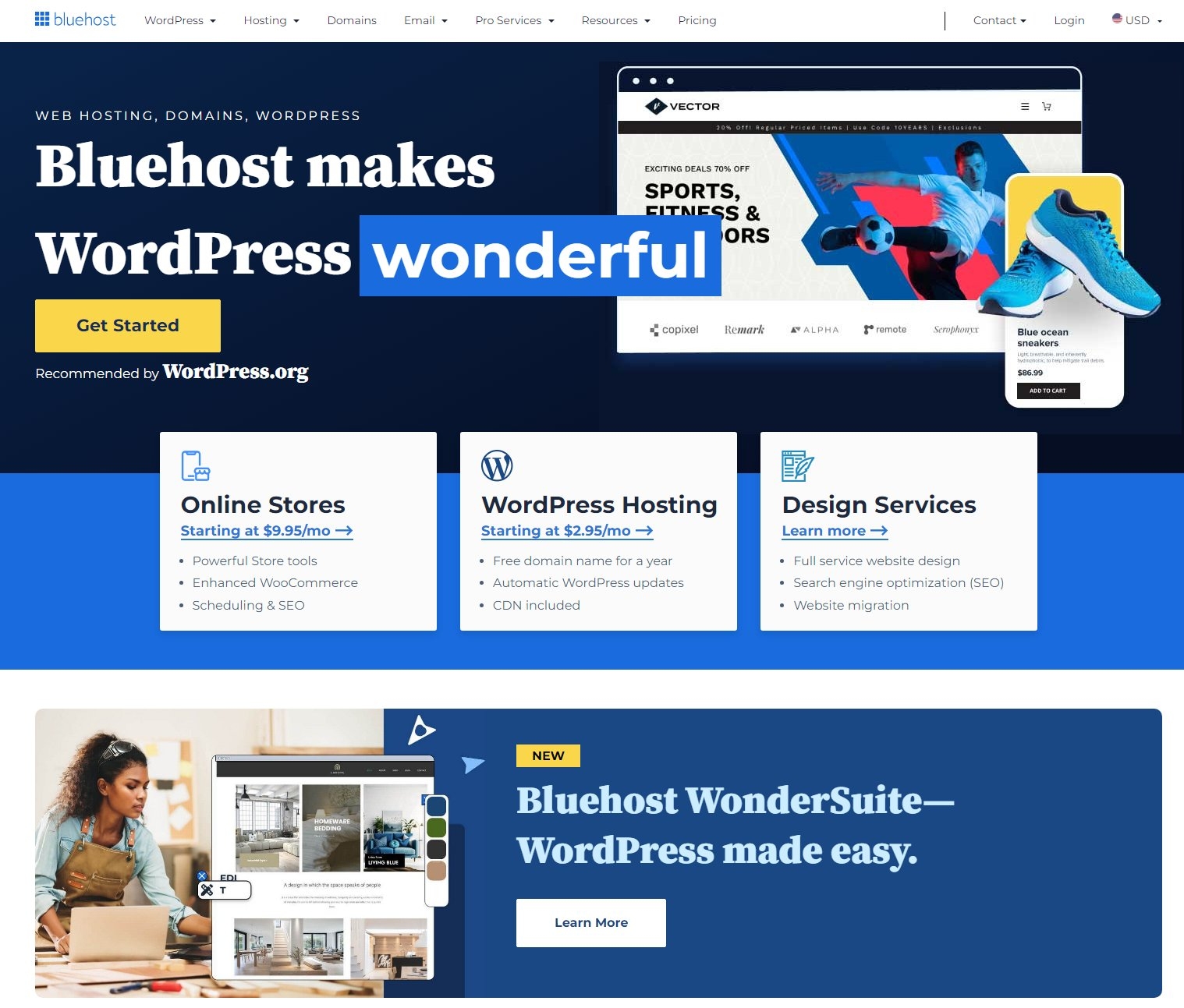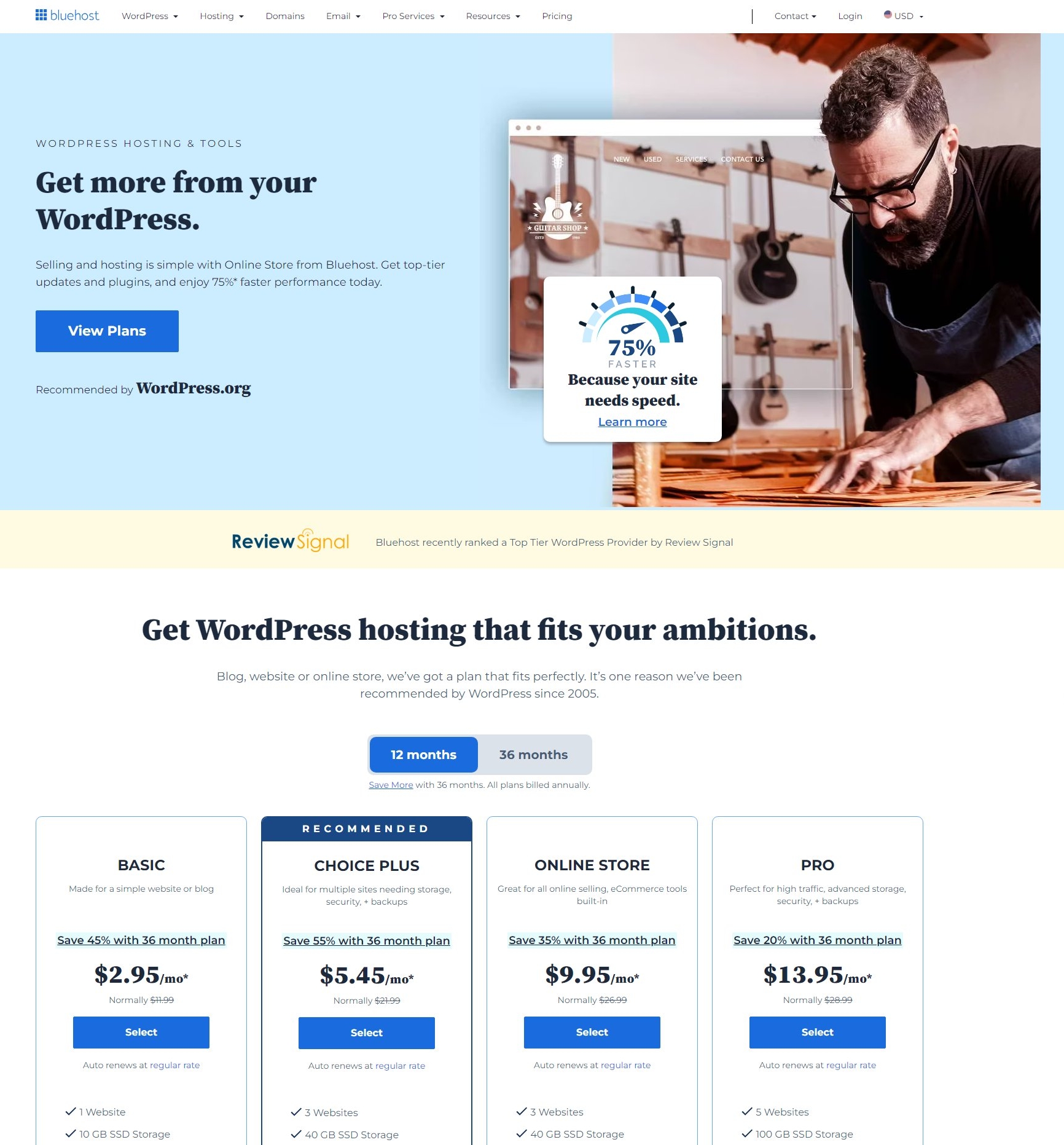 - Επισκέψου την BlueHost και πήγαινε στα WordPress ή WooCommerce hosting πακέτα τους.