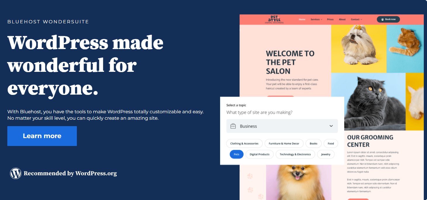 Η BlueHost προσφέρει μια πληθώρα επιλογών σε όσο αφορά τις hosting επιλογές, από απλά shared hosting πακέτα μέχρι και VPS και Dedicated servers. Η εταιρεία εστιάζει στο να παρέχει ένα εύκολο διαχειριστικό περιβάλλον το οποίο μπορούν να χρησιμοποιήσουν αρχάριοι χρήστες με ευκολία, επιτρέποντας την εγκατάσταση του WordPress με λίγα μόλις κλικ.