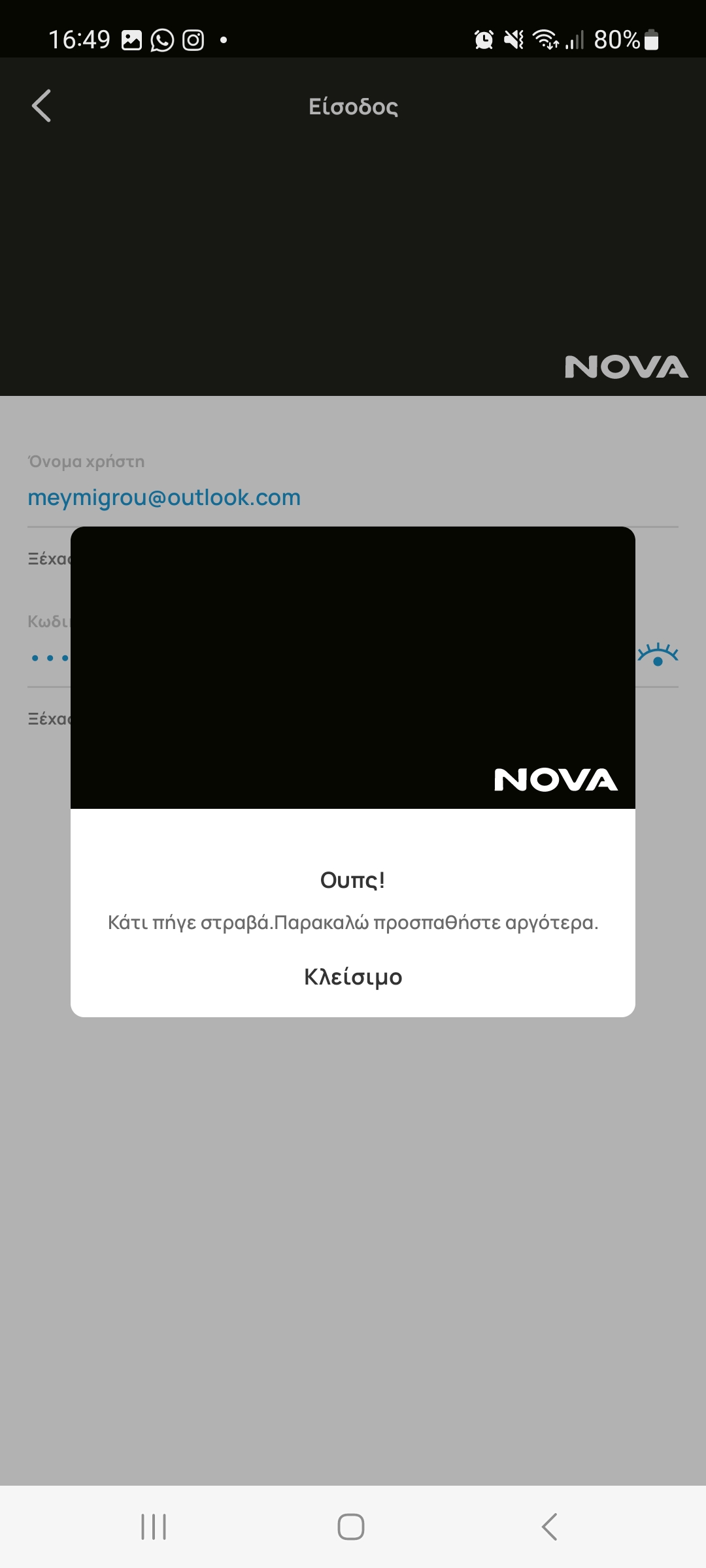 Συνάντησα τα πρώτα προβλήματα με την εφαρμογή της Nova στο Android 12 απευθείας με την πρώτη προσπάθεια που έκανα για να συνδεθώ στον λογαριασμό μου. Η εφαρμογή μου ζήτησε να δηλώσω ένα καινούργιο κωδικό πρόσβασης και, αφότου το έκανα, μου εμφάνισε σφάλμα “Ουπς! Κάτι πήγε στραβά. Παρακαλώ προσπαθήστε αργότερα”.