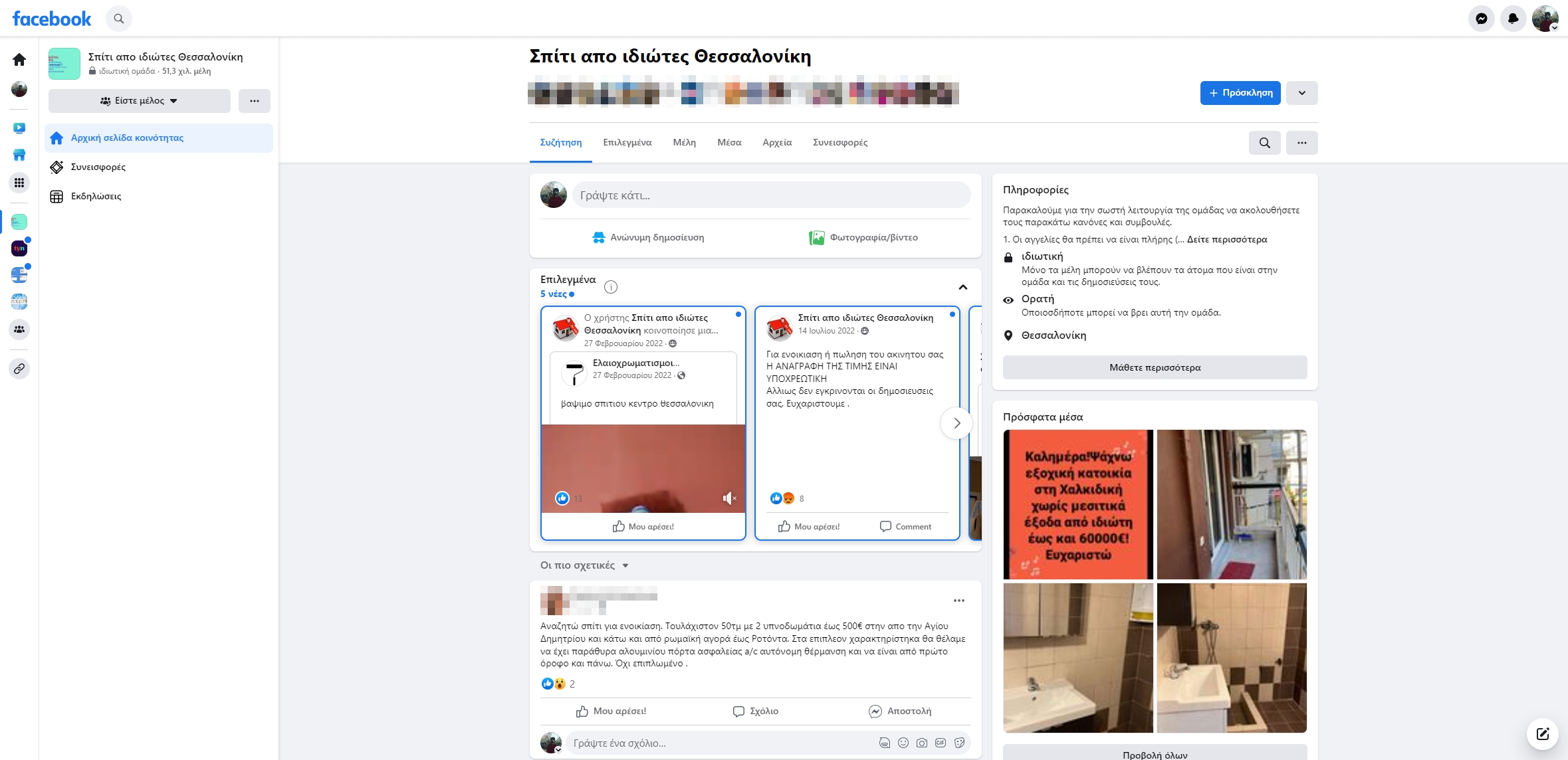 Ένα Facebook Group με Σπίτια από ιδιώτες στην Θεσσαλονίκη. Το συγκεκριμένο group έχει περισσότερα από 50 χιλιάδες μέλη.