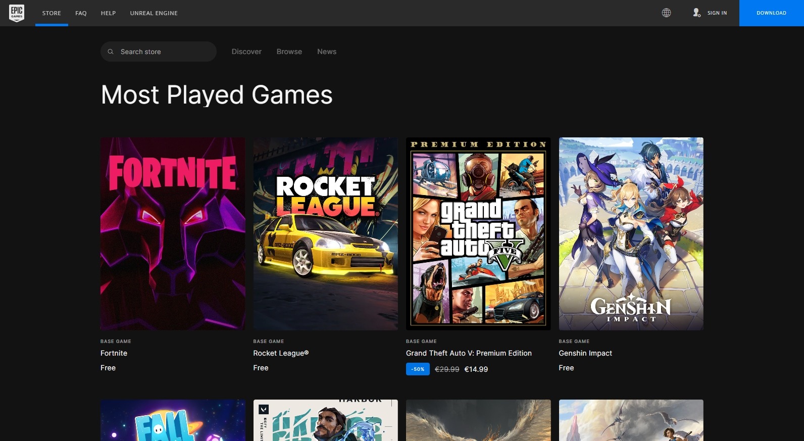 Τα παιχνίδια που έχουν παιχτεί περισσότερο στο Epic Games Store.