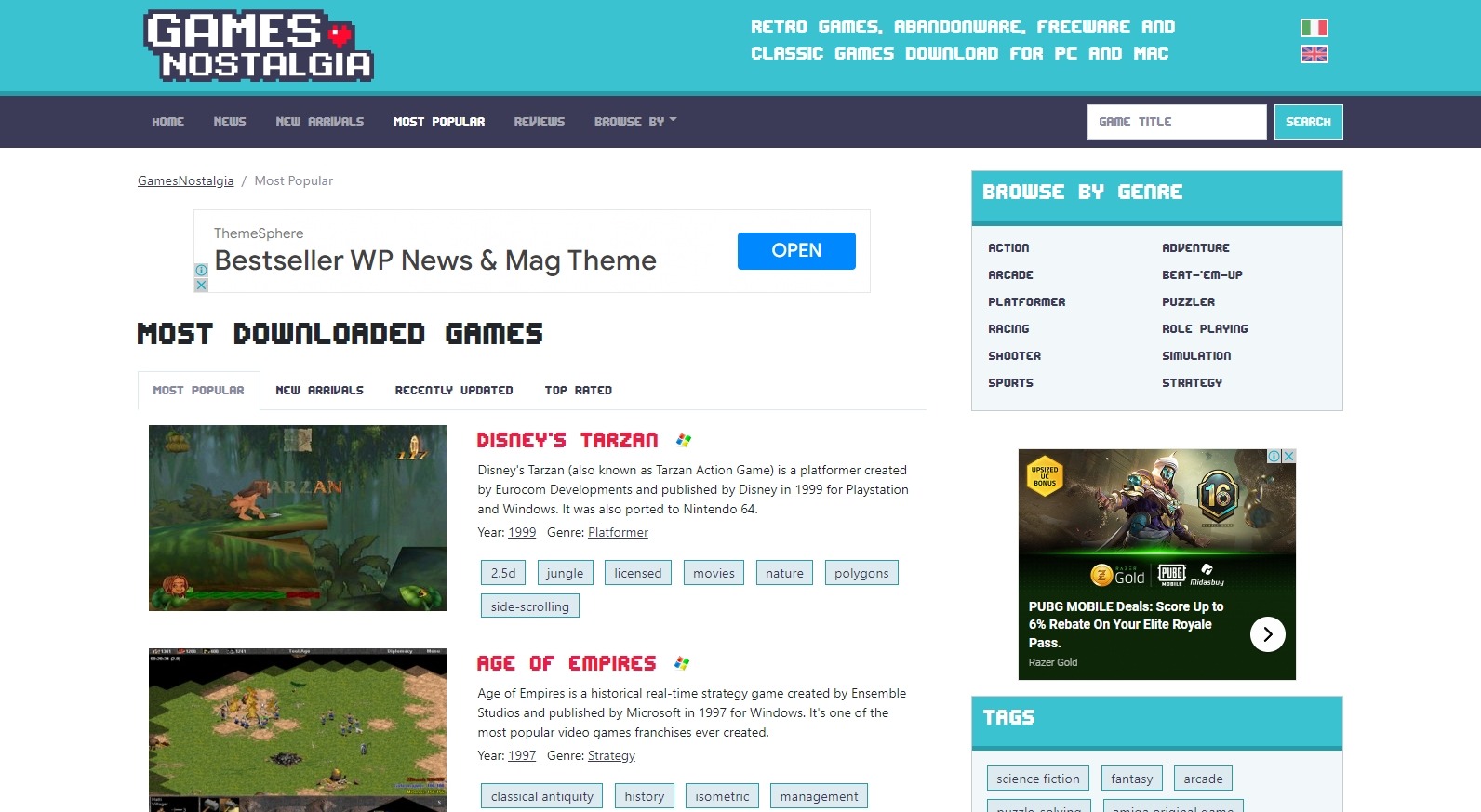 Το Games Nostalgia είναι μια ιστοσελίδα η οποία απευθύνεται και εστιάζει αποκλειστικά στο retro gaming. Όλα τα παιχνίδια που θα κατεβάσεις από εκεί παρέχονται εντελώς δωρεάν και συμπεριλαμβάνουν έναν emulator ο οποίος τα κάνει συμβατά με τα Windows ή το Mac. Αν ενδιαφέρεαι να παίξεις πασίγνωστους τίτλους παιχνιδιών όπως το Doom, το Civilization, το Dune II, το Lemmings, το Warcraft I και II, το The Settlers, μεταξύ εκατοντάδων άλλων, τότε το Games Nostalgia είναι must!