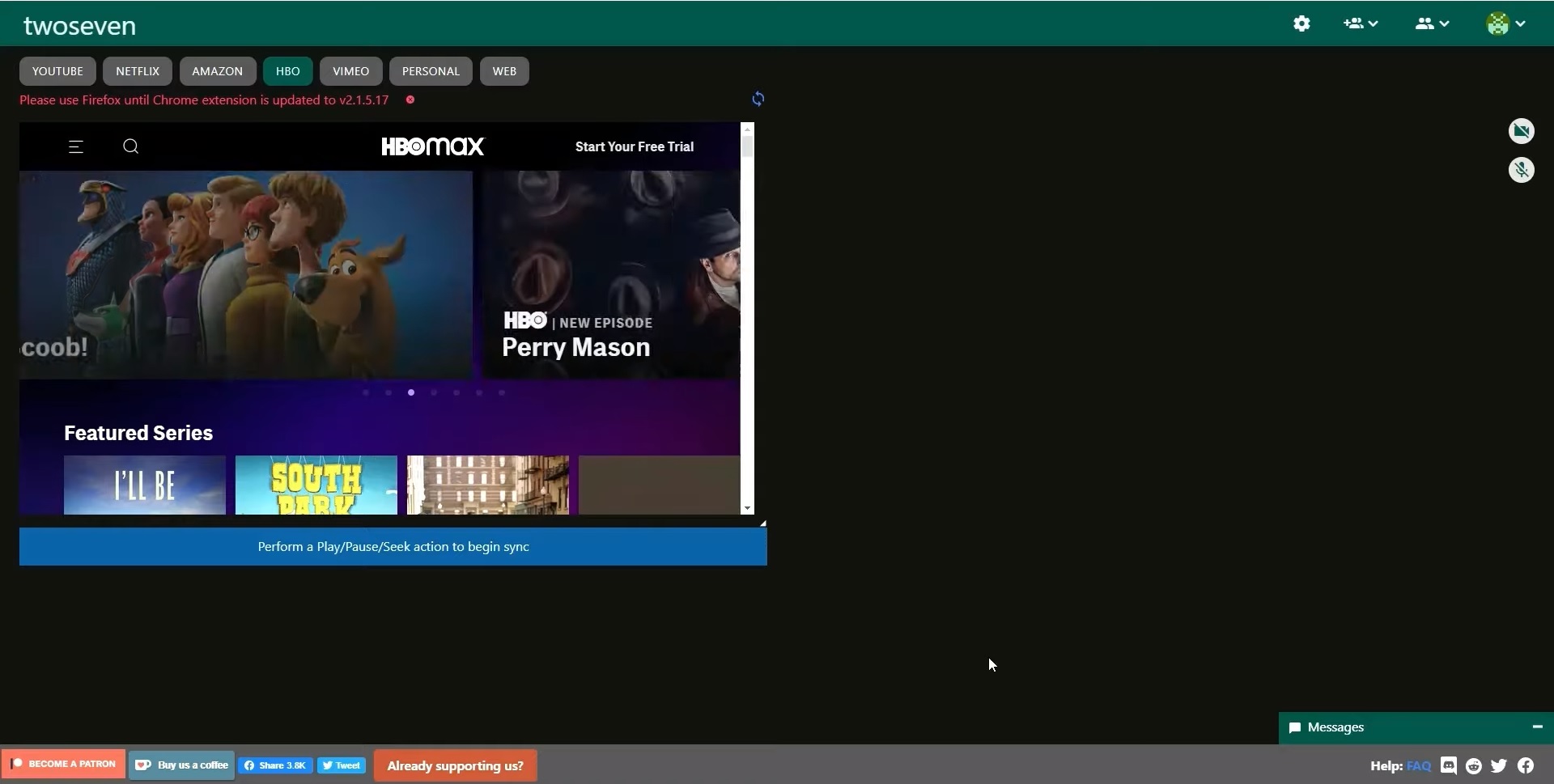 Το TwoSeven είναι ιδιαίτερα παρόμοιο με το Kast που αναφέρθηκε παραπάνω. Η υπηρεσία σου επιτρέπει να παρακολουθείς σχεδόν το οτιδήποτε μέσα από το πρόγραμμα περιήγησης που χρησιμοποιείς σε συνδυασμό με άλλους χρήστες. Πρόκειται για μια σχετικά ελαφριά εφαρμογή η οποία δεν χρησιμοποιεί αρκετούς πόρους από το σύστημα σου ώστε να λειτουργεί, ενώ παρέχεται και μια επέκταση για το Google Chrome και το Mozilla Firefox που αναλαμβάνει όλο τον συγχρονισμό.